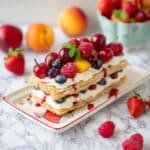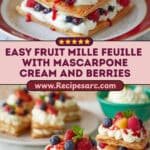 This Fruit Mille Feuille with Mascarpone Cream is an elegant layered dessert featuring flaky French puff pastry, luscious mascarpone cream, fresh mixed fruits and berries, and a tangy homemade raspberry sauce. Perfect for any occasion, this recipe offers a delightful combination of textures and flavors that will impress family and guests alike.